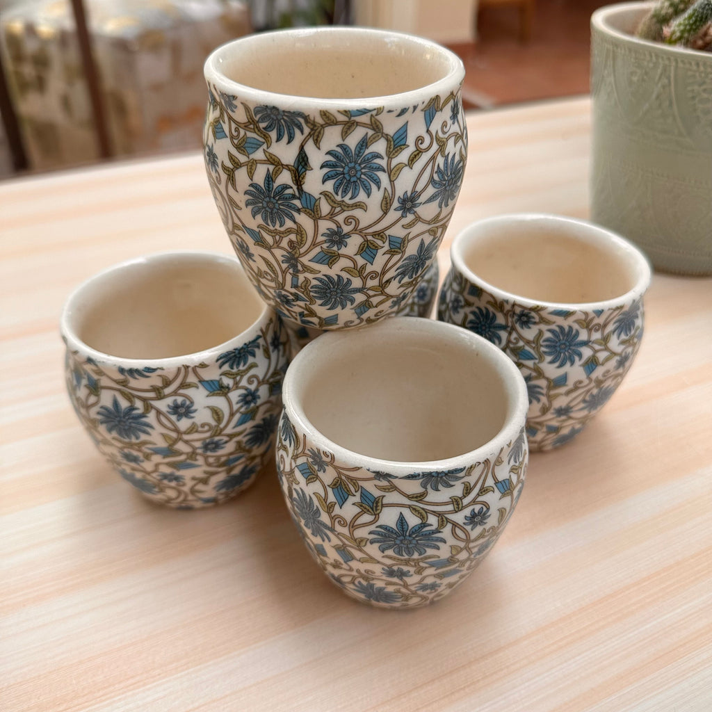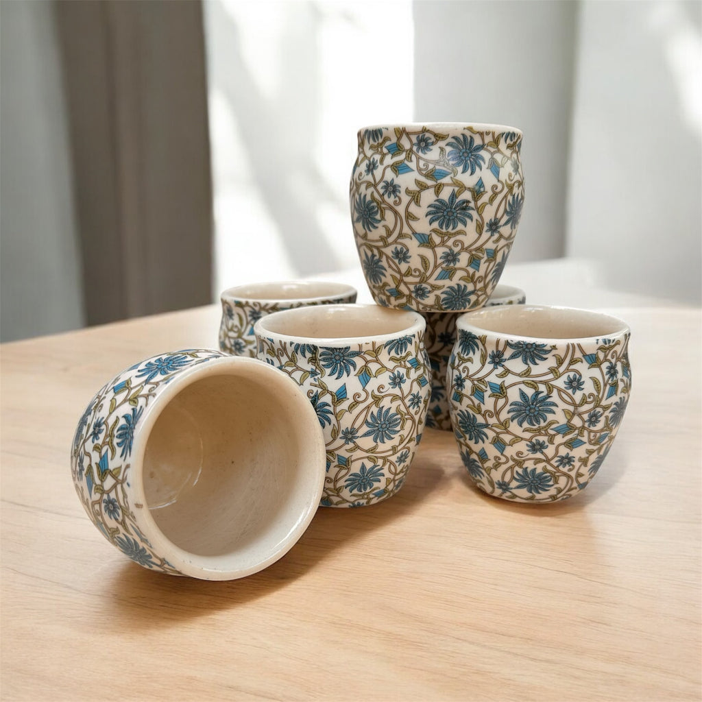 Floral Ceramic Cups – Set of 6 | Hand-Painted Tea, Coffee & Espresso Cup Set