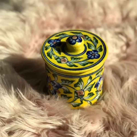 The eye-catching beautiful blue color art from Jaipur Blue pottery is different from other pottery, it is made by mixing quartz stone powder, powdered glass, Multani Mitti, borax, gum, and water.