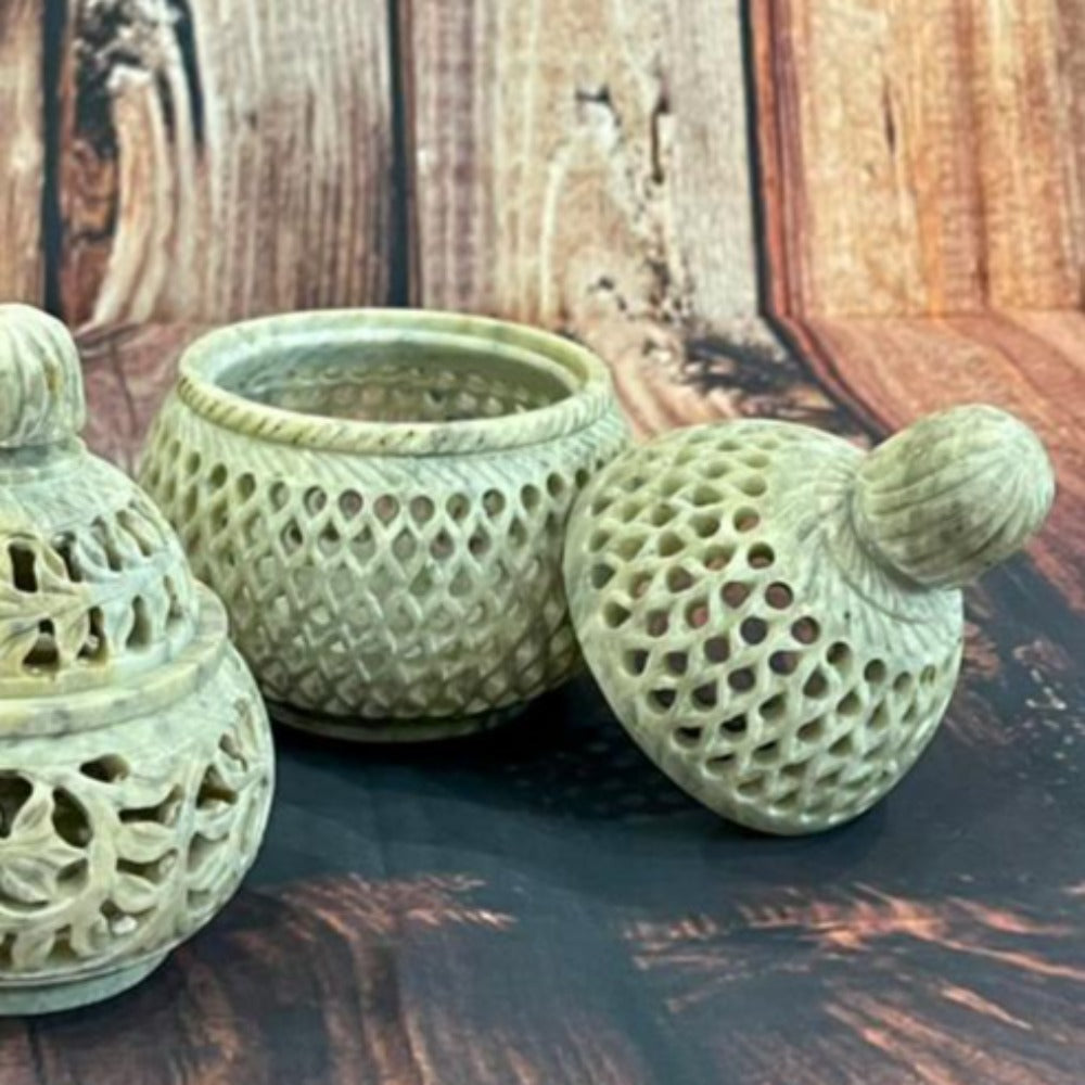 • Gorgeous potpourri bowl with lid intricately crafted from marble.