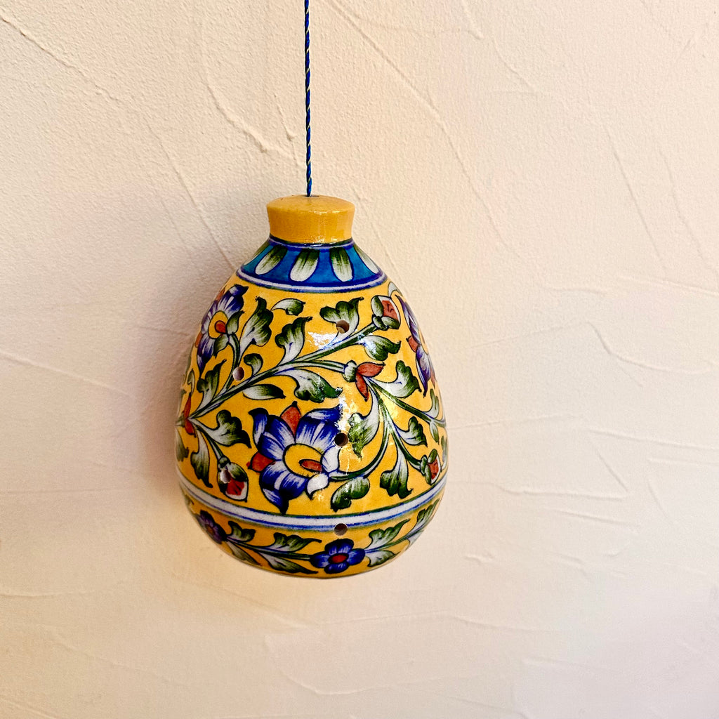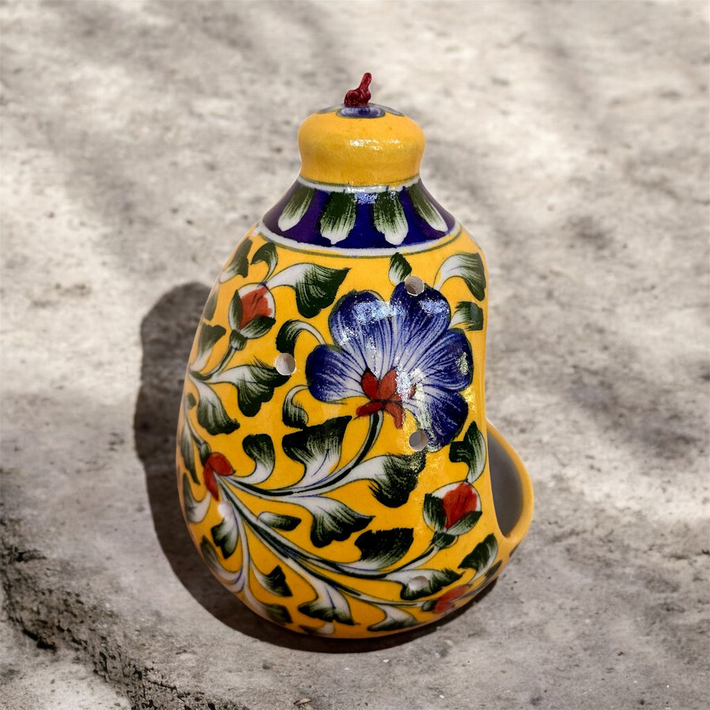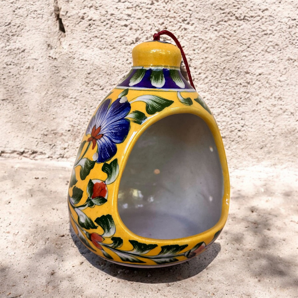 Add a splash of vibrant color and a touch of artisanal charm to your outdoor space with this stunning, hand-painted ceramic bird feeder. Designed to attract small, charming birds like chickadees and finches, its unique design and durable construction will make your garden a favorite spot for feathered friends.