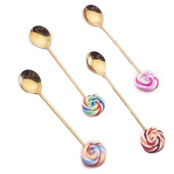 - This cute spoon has a long twig creative and colorful lollipop handle.