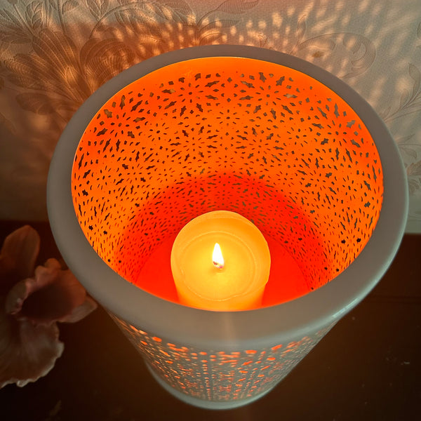 Metal Candle Holder Orange White