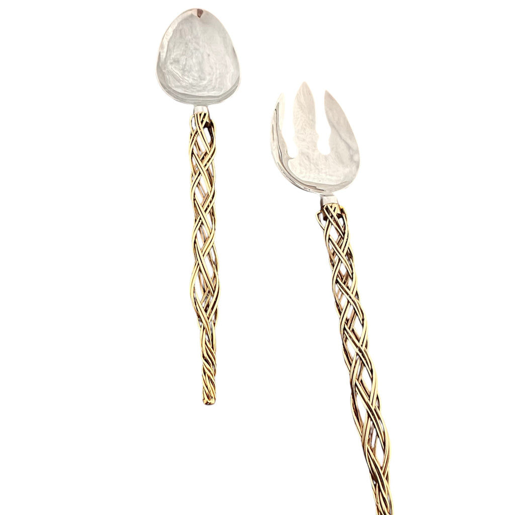 - 2 piece set of stainless steel spoon and fork for serving salads.
