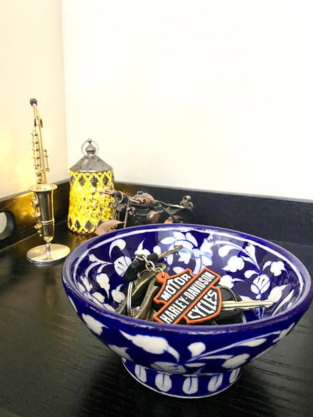 Small things always make a big impact and our eye-catching blue pottery ceramic bowls, are of no exception. Create your own space of artistic items by picking from our variety of attractive decor elements. The hand crafted work gives it a striking style, making it perfect for your settings. These handmade pottery bowls are perfect for cereal, salad or soup, salad bowls.
